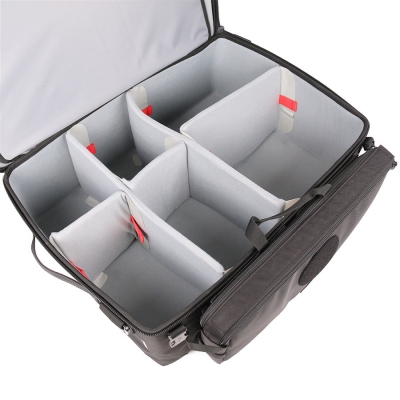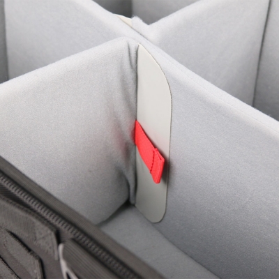 Compartiment principal ajustable, espace de rangement modulable grâce à cinq séparateurs en mousse fixés par velcro, permettant une organisation personnalisée du matériel